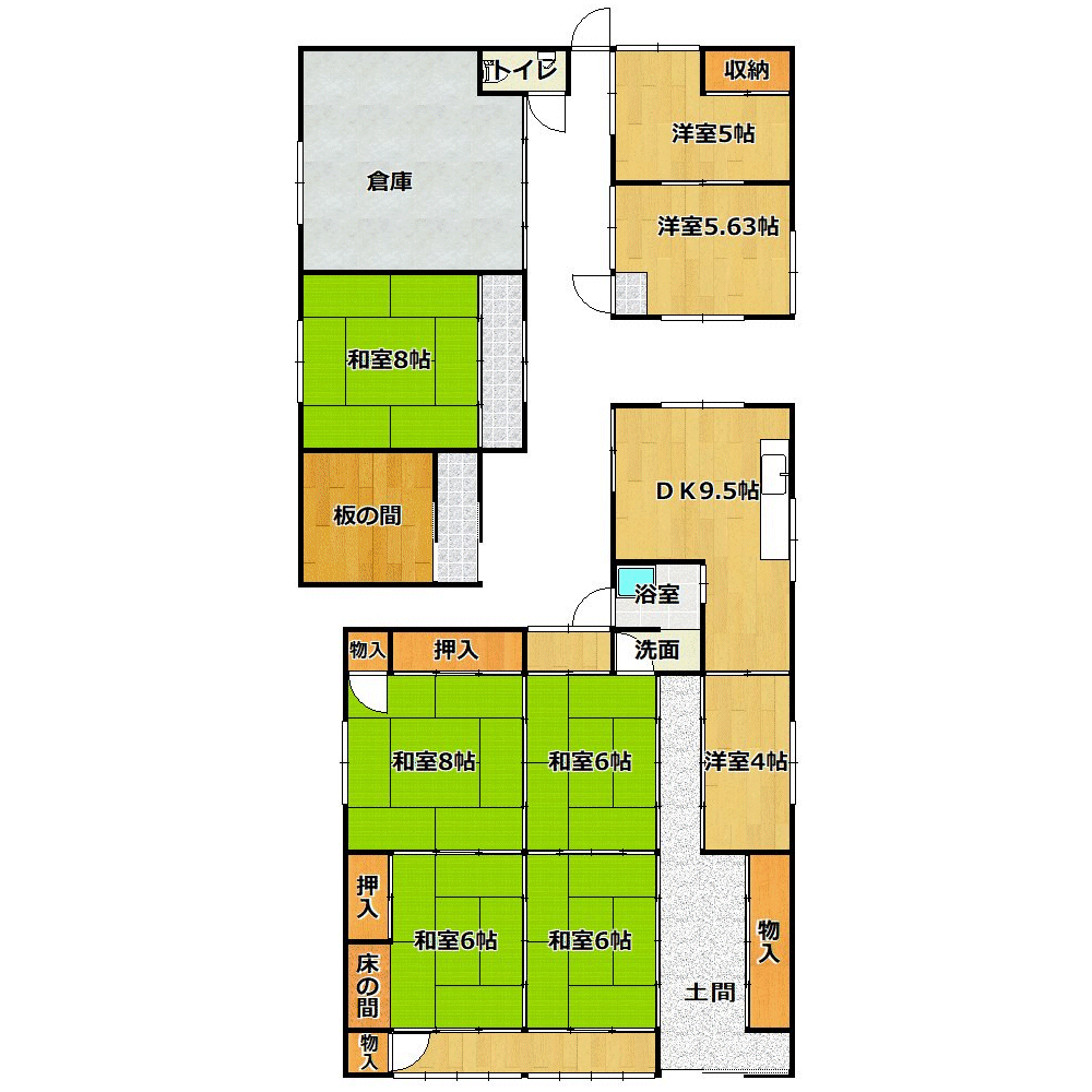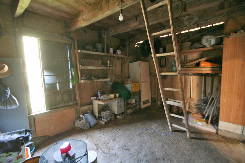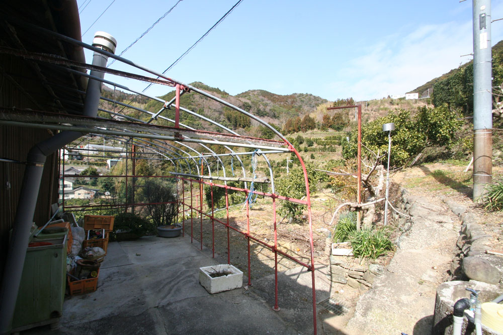 海南市と有田川町の間にある山間の物件です。物件はミカン畑に囲まれた釜中の集落のはずれに建っています。高台にあり、眺望良好です。建物は木造の平家建ての古民家です。白蟻や雨漏れの跡が確認できましたので、使用するにはリフォームが必要です。離れや納屋、車庫もあります。約50㎡の倉庫はしっかりしていて、作業場など多目的に利用できそうです。敷地内の畑では、ミカンが植えられています