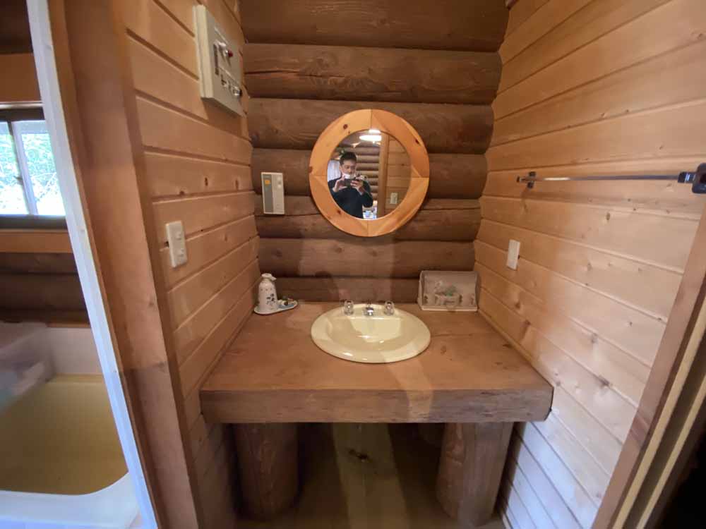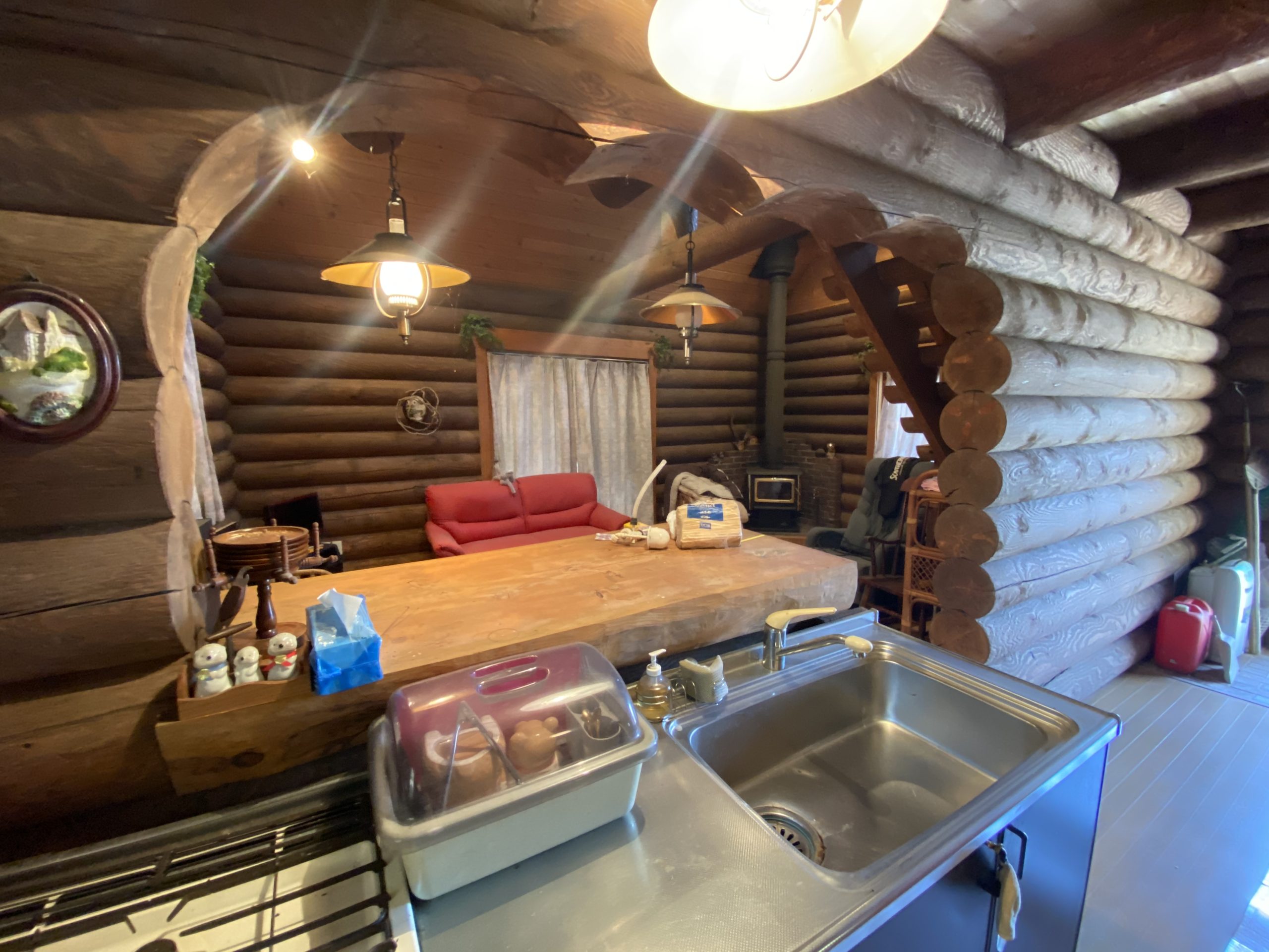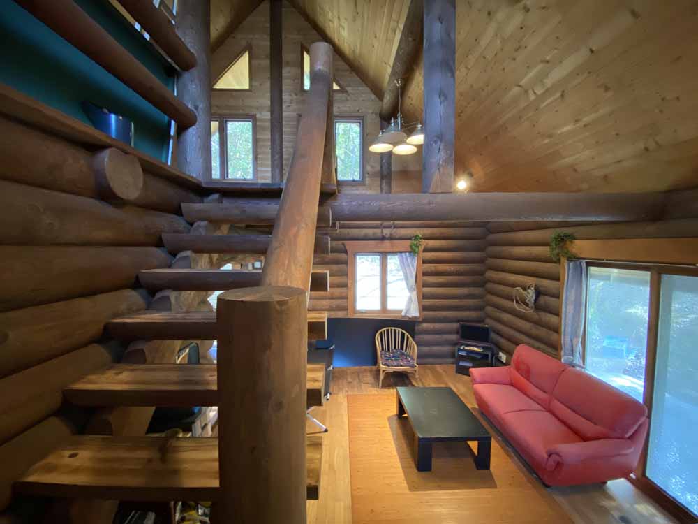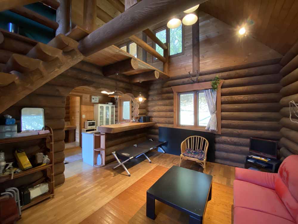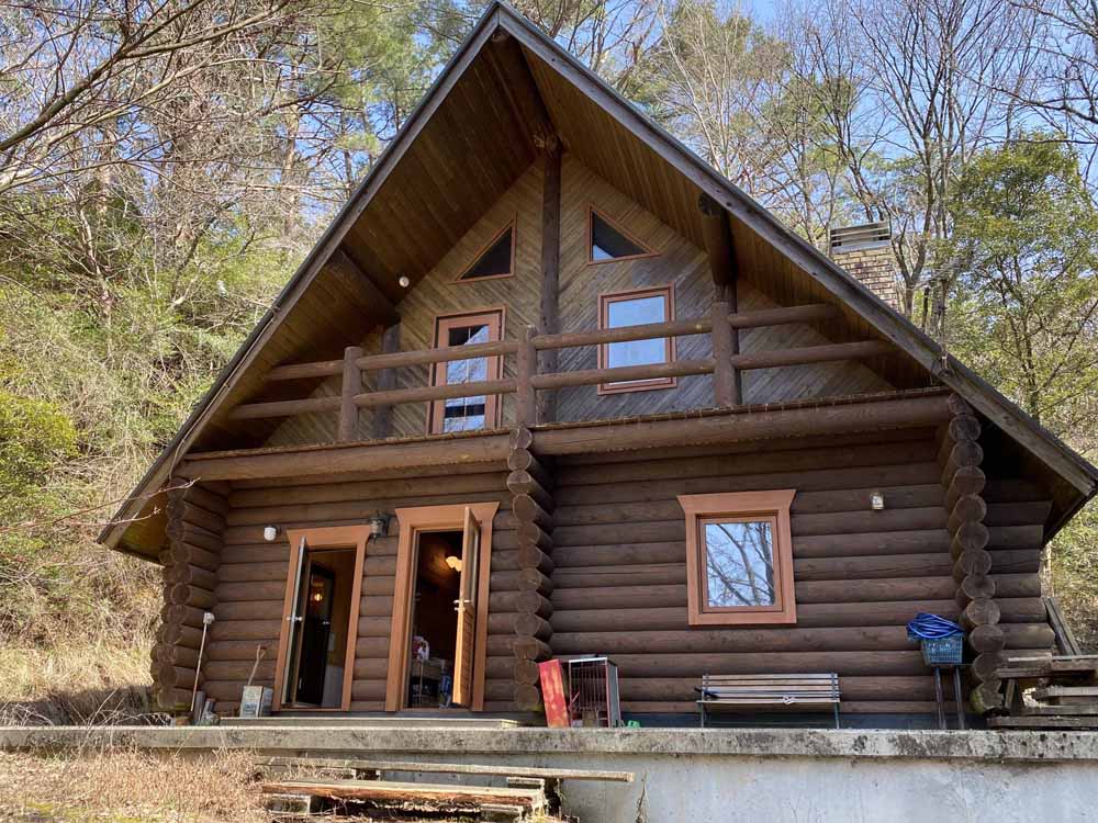 生石高原の別荘地にある薪ストーブ付きログハウス
