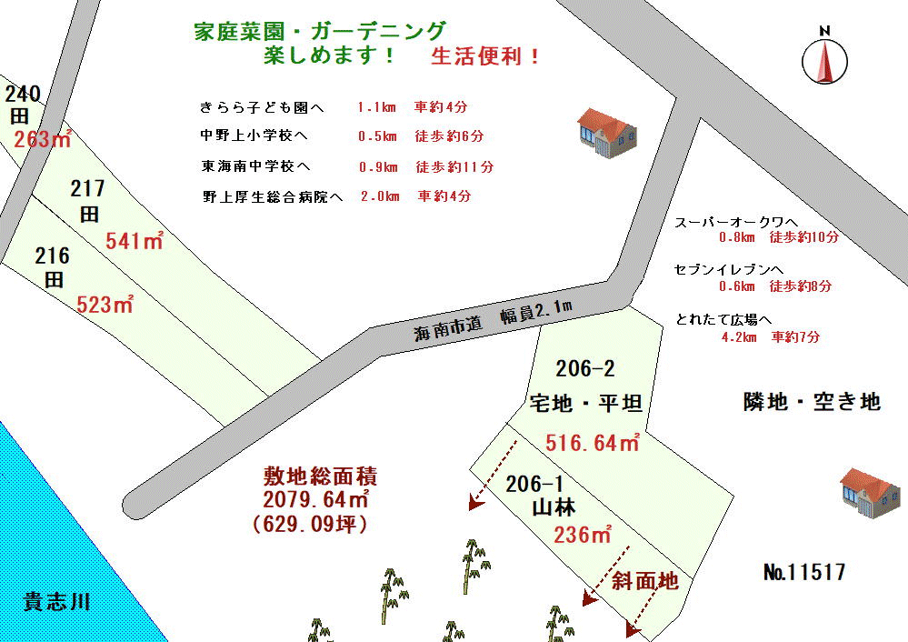 | 物件名 | 海南市 椋木 土地(物件番号11517) | ||