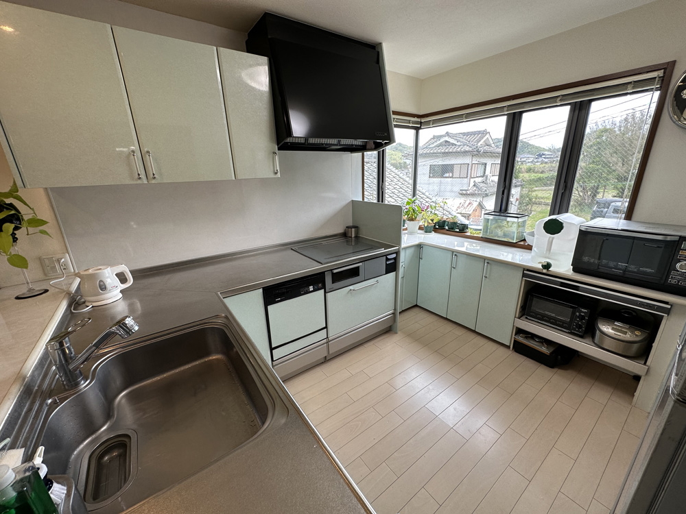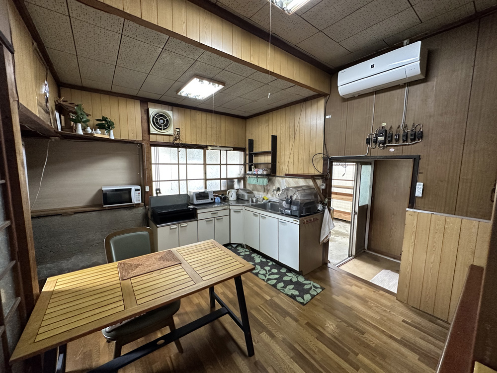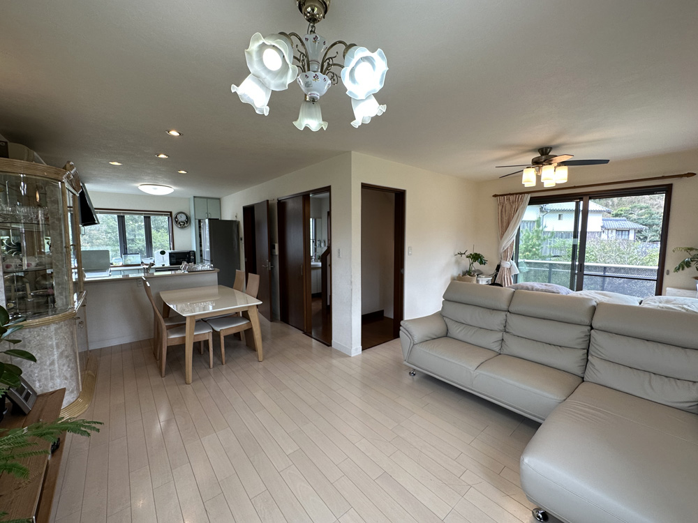 和歌山県北部、海南市と紀の川市の境目あたりに位置し、付近のスーパーなどには車で10分以内でいく事ができる場所に物件はあります。まわりにも田園風景が広がっており、長閑な環境。建物は築21年のハウスメーカーの綺麗な鉄骨造3階建と、それとは対照的な築54年の趣ある日本家屋が敷地内にあります。それぞれの住宅設備は現役で稼働しているのでリフォームなしでそのまま2棟ともご利用できます。大家族の2世帯住宅向けの物件です