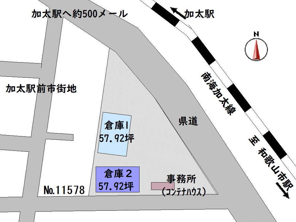 524.72坪の平坦地に間口19.58m 奥行9.78mの現在、平家建て倉庫が2棟建っています。1棟は令和4年6月の新築。もう1棟は令和5年1月の新築。物流拠点として使用中。保管倉庫としても利用できそうです。敷地は県道側間口が約76m 市道側間口が約49m。大型車・コンテナ車が十分出入りできる広さです。大阪泉南と和歌山市を結ぶ国道26号線バイパス淡輪ランプ・孝子ランプや和歌山市六十谷の大谷ランプからは車で21分~24分前後。