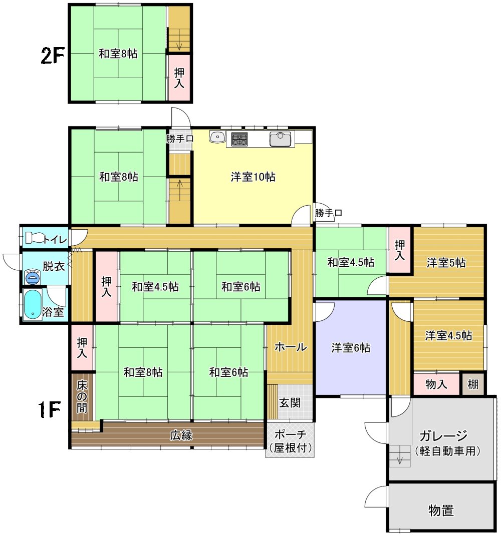 建物内外とも管理良好で日当たり良好な1部2階建日本家屋