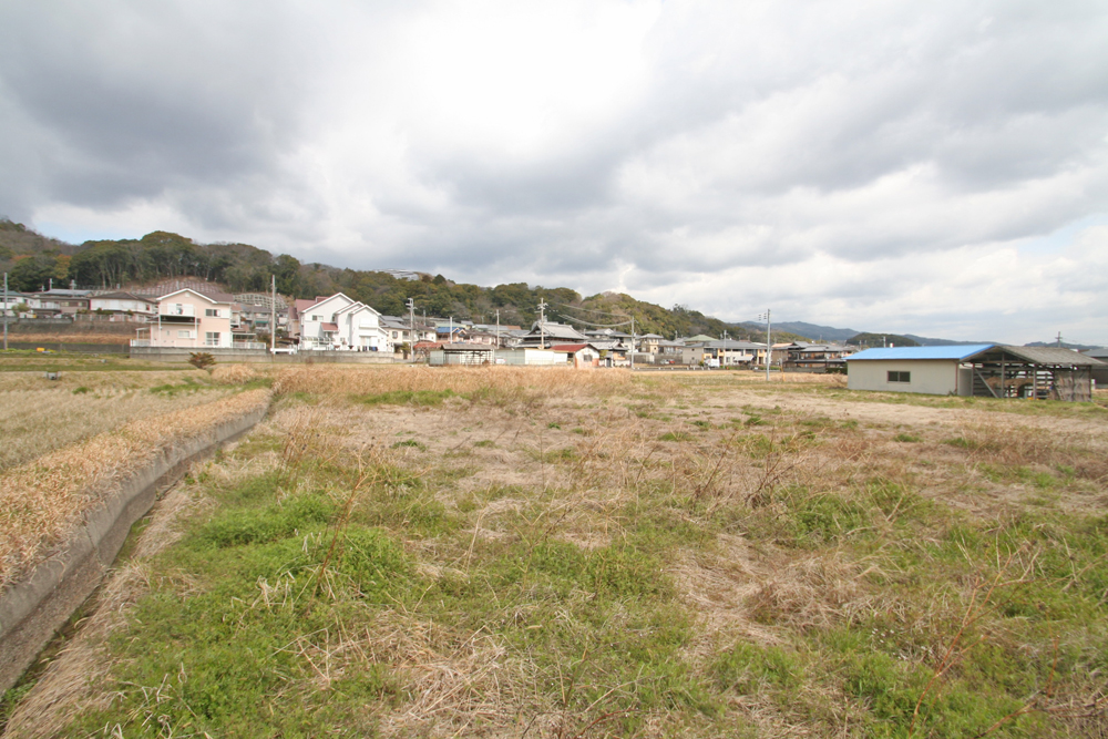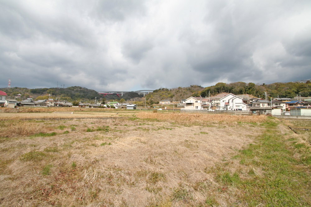 岩出市の北西部に位置し、大阪府南部の阪南市や泉南市に車で15分~20分で行ける立地にあります。岩出市の中でも田畑の多く残った地域にあり、物件周辺も田畑に囲まれています。少し高台になっているので、南方向への見晴らしが良いです