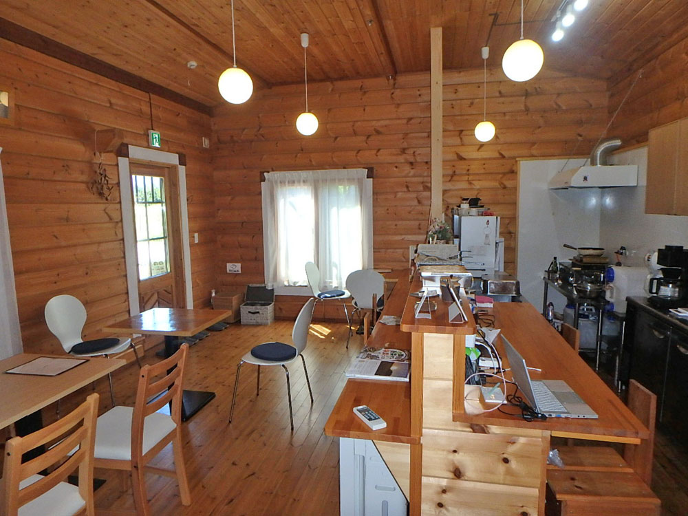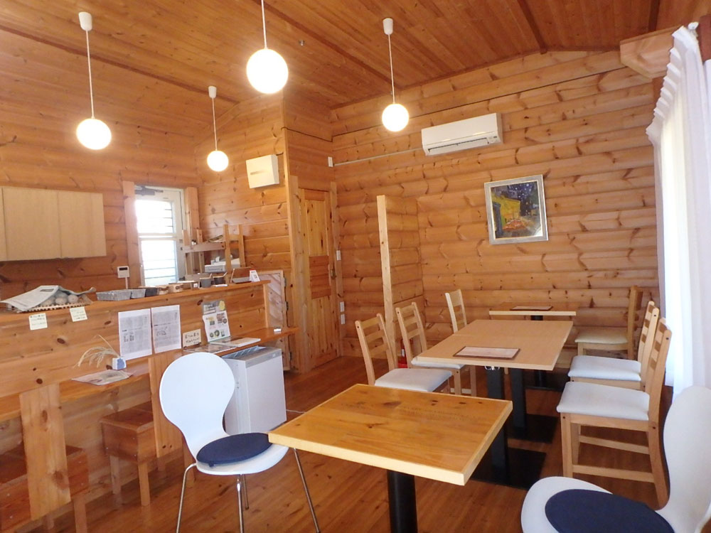 2階建て角ログハウス、週末カフェ営業中のログ店舗付