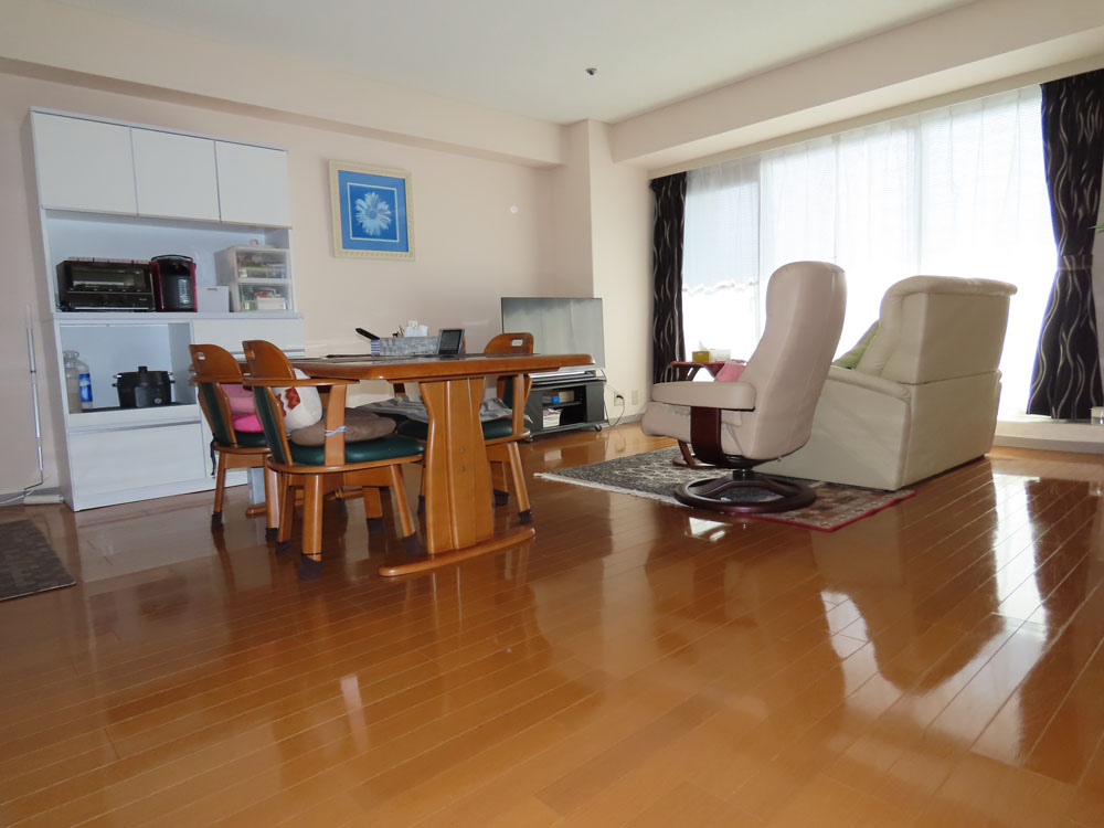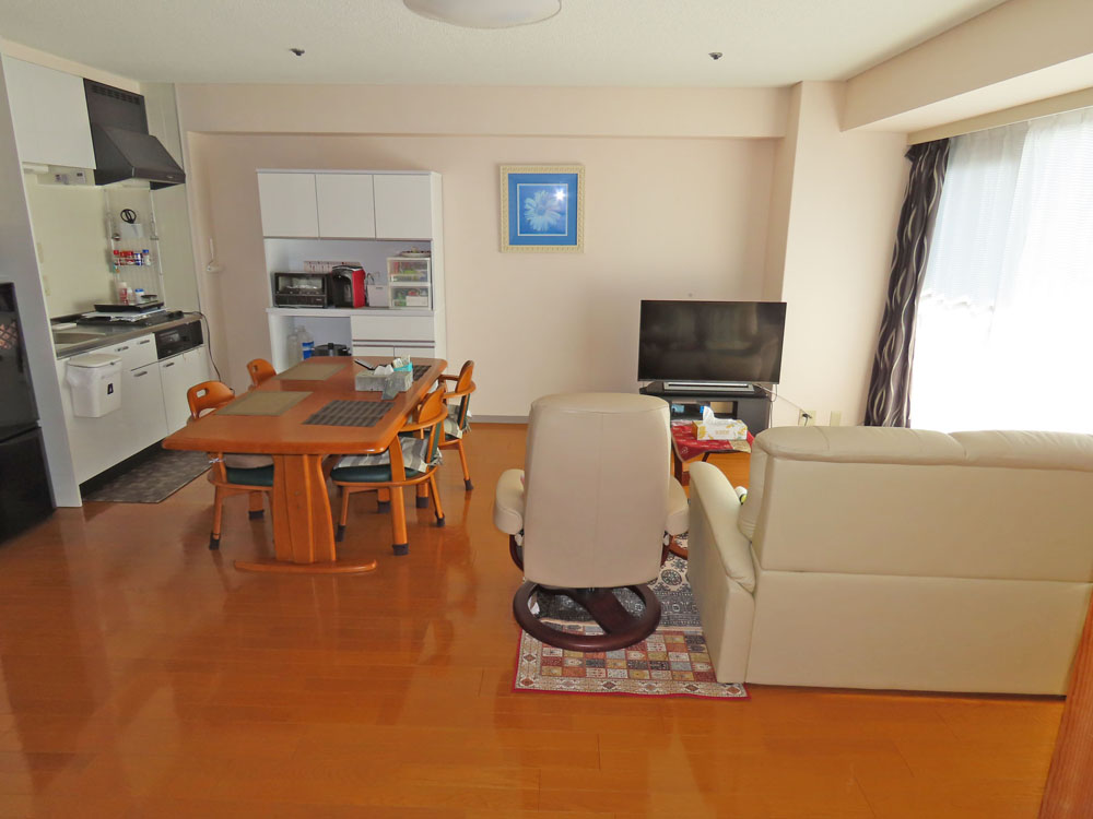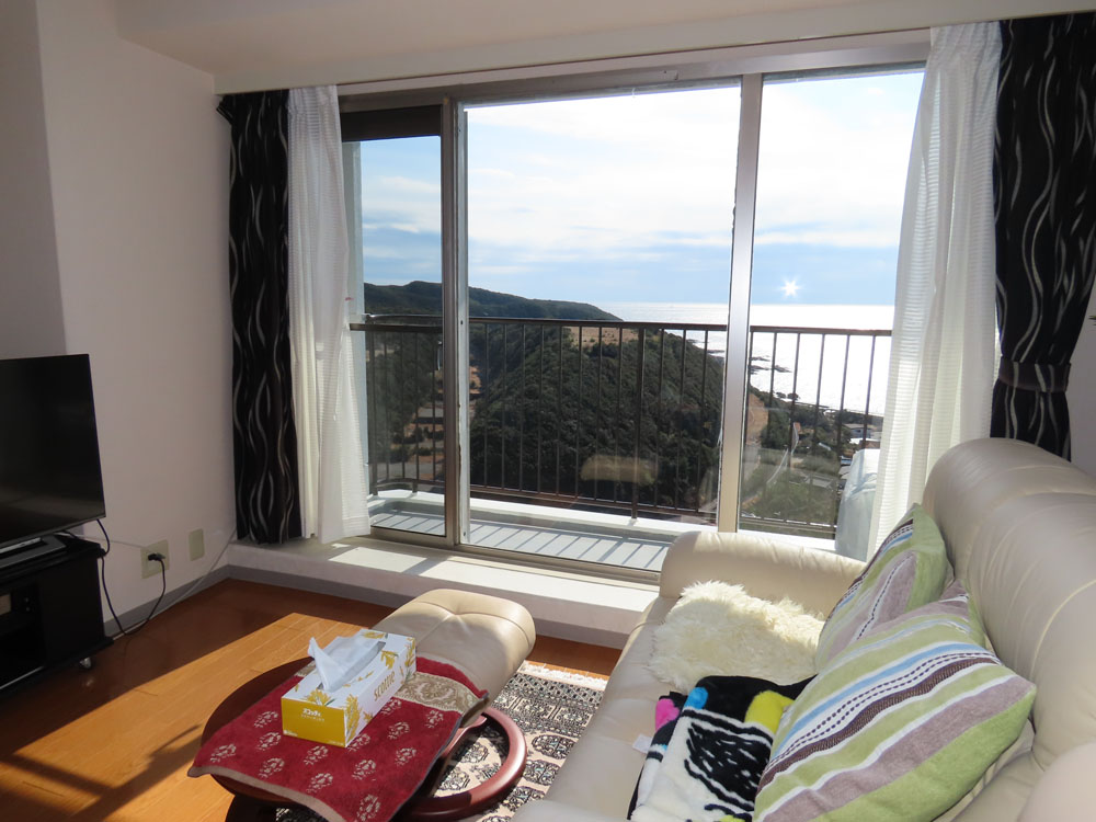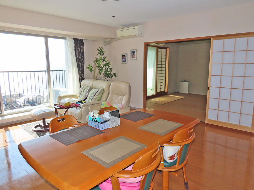 プレジデント椿 最上階の28階角部屋。南向きの窓からは海と緑の、西向きの窓からは水平線に沈む夕陽の絶景を楽しむ事ができます。お部屋は広々とした2LDK。室内もとても綺麗です。夏は屋外プールを楽しみ、冬は温泉で心も身体もリフレッシュ。別荘や保養所はもちろん、定住の方にもオススメの物件です。
