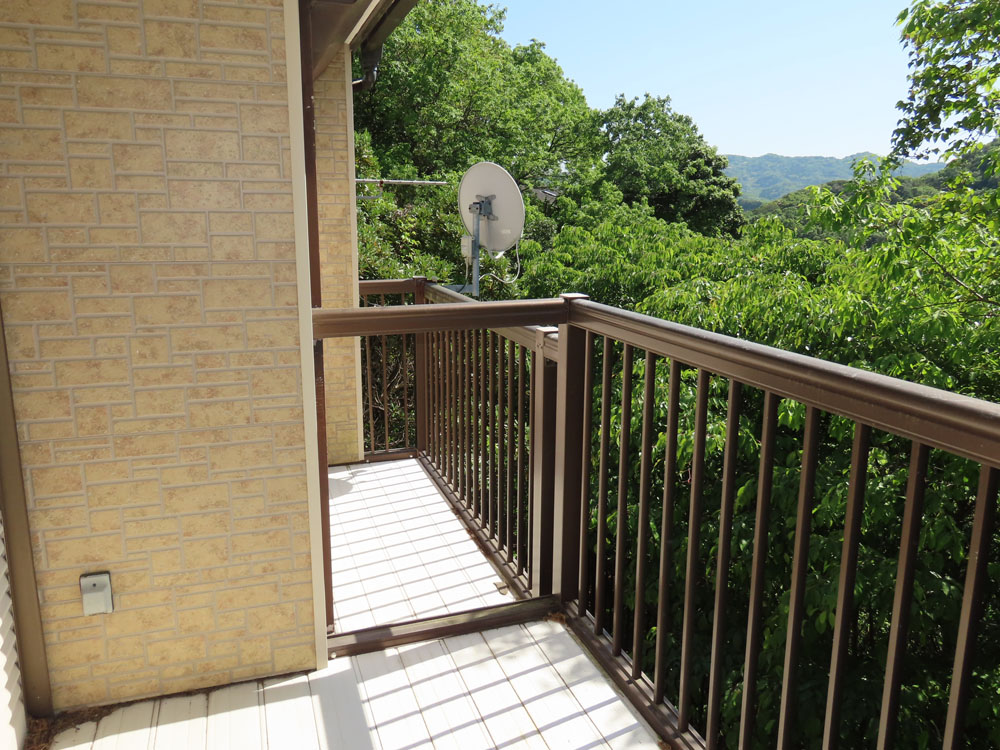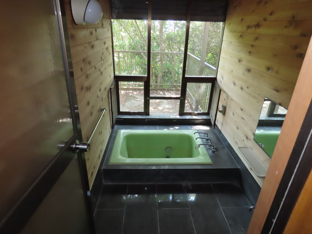 バラード白浜内の一戸建て。2階に和室が2部屋、1階はLDK、ダイニングは小上がりの畳の間となっています。浴室は一面ガラス張りで、室内は石と木を使用した温泉宿風の落ち着ける作りとなっており、窓から見える木々の緑を楽しみながら、温泉でゆったりとした時間をすごせます。また、玄関脇に磯まで直結の階段があり、敷地内から釣りに出かけることも可能です。バルコニースペースも広く、BBQも可能。釣った魚でとれたて新鮮BBQもいいですね。