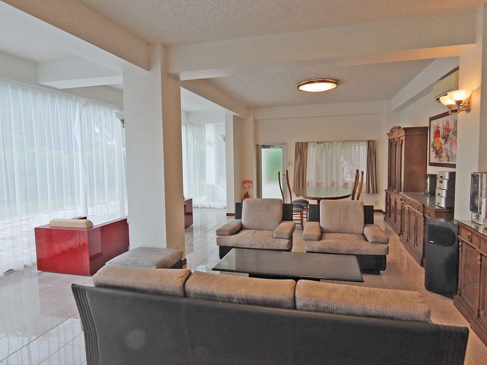 メインリビングは全面ガラス張りのホームパーティ―も余裕の33帖リビング、お庭とフラットでラグジュアリーモダンな空間に、高級家具もついています。緑に囲まれたお庭は窓側に石畳を敷いているのでBBQなどを楽しめるスペースとして利用でき、お庭の3分の2には人工芝をいれており、わんちゃんも走り回る事ができます。JRきのくに線白浜駅、車で15分。スーパーオークワ車で15分、白良浜車で10分と生活も便利で定住もおすすめです