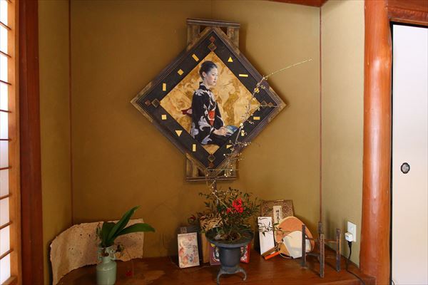 床の間の絵はもちろんご主人の作品。変わった額縁と思ったら、これもご主人の作だそうです。