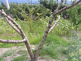 花は3年間楽しませてくれたのですが、実は成らなくなり、今年切ってしまいました。ご近所の桃農家さんも話してくれていたのですが、桃の完全無農薬栽培はできないようです。