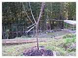 畑は家の前の山の斜面に面した段々畑。広さは1反あります。引越し当初は、荒れた状態の畑でしたが、半年以上かかって少しずつ耕し直しながら野菜を作り始めたそうです。自家消費用の野菜なので、少量ずつ沢山の種類を栽培しています。今年の冬はたまねぎ、アスパラ、にんじん、青ねぎなど30種類の野菜と10種類の果樹を育てています。