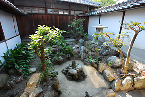 まずお店の裏が母屋で広い田の字の和室があり、縁側の先には噴水や石灯籠を配した中庭。2階も広い部屋があります。