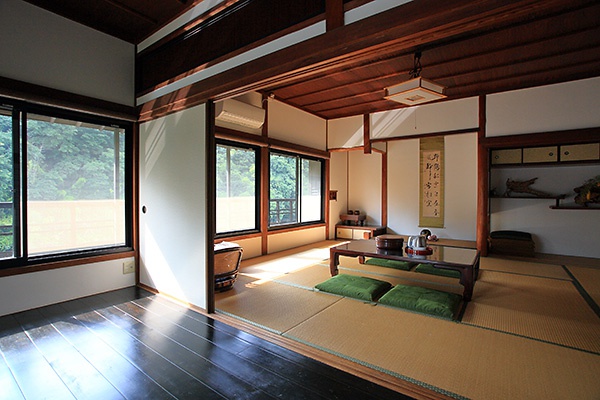 2階には和室・板の間・広縁があり、貴志川を見下ろす眺望と対岸の緑が素晴らしい借景になっています。