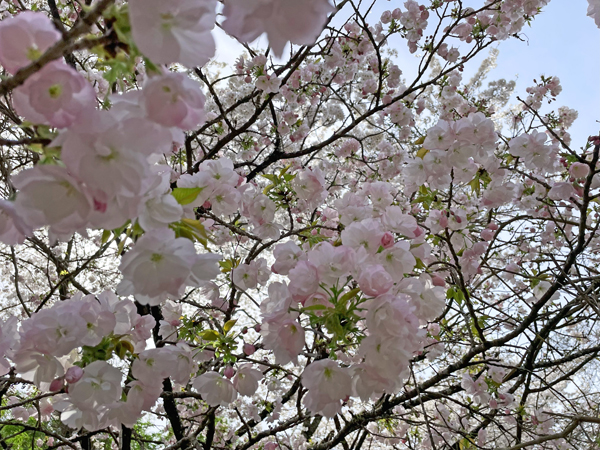 根元をよく見ると、2種類の桜(山桜と八重桜かな?)が、1本の桜のように