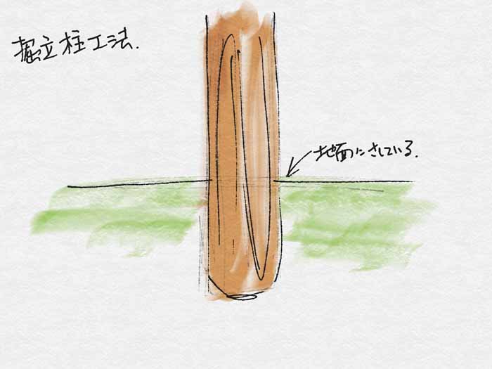 ①古代建築・・・掘立柱工法(ほったてばしら)