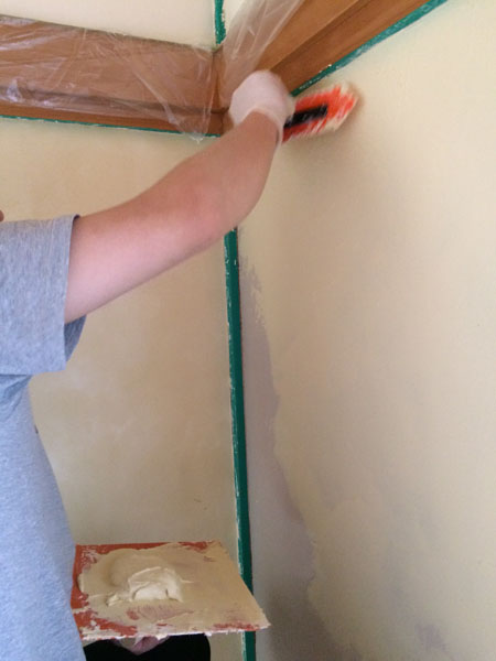 紀の川市豊田にある現在建築中のリノベーションM様邸壁塗りの様子です。
