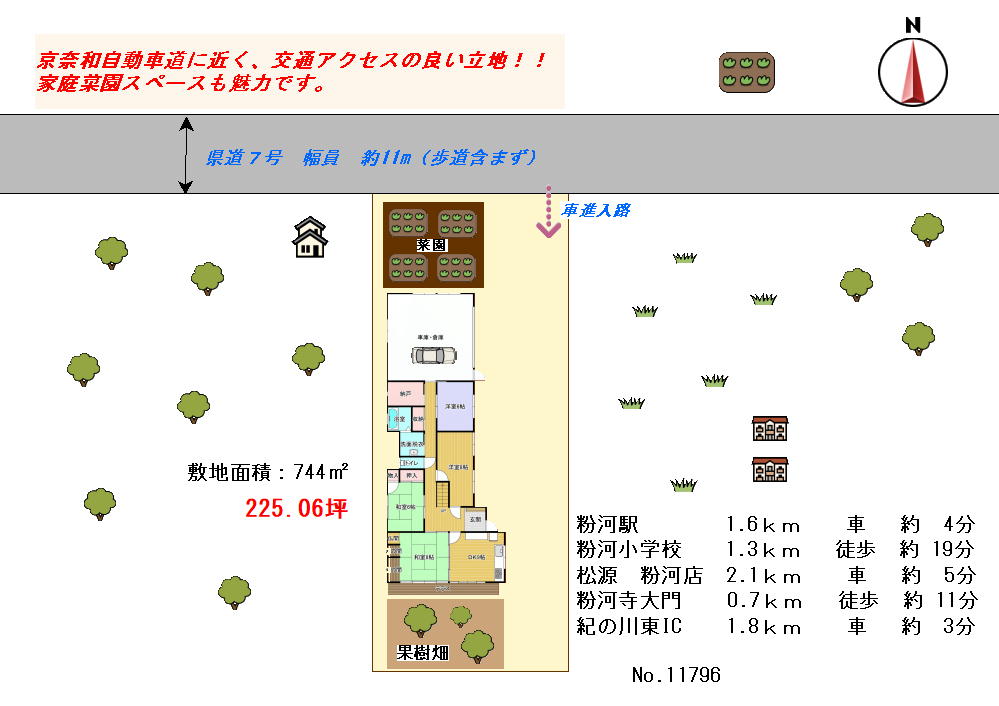 広々とした敷地が魅力の物件 スーパーまでは車で5分、京奈和自動車道ICまで車で約3分と