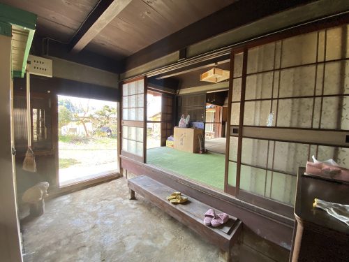 昔懐かしい三和土(たたき)土間の玄関。