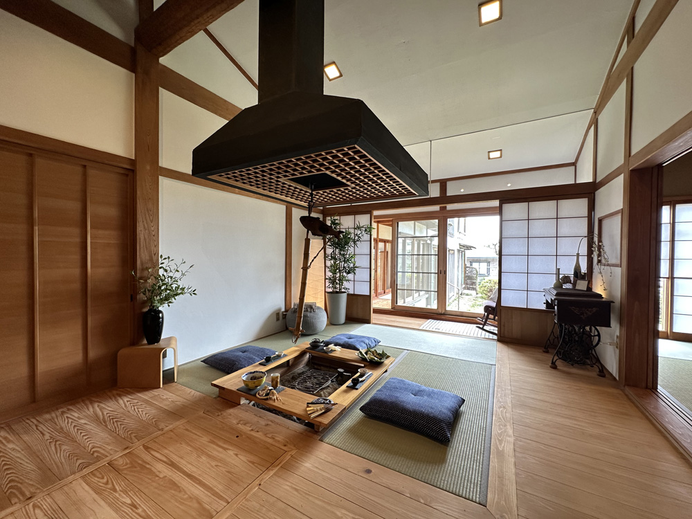 中央にあるお部屋には、囲炉裏も完備されており、どこかの旅館にでも来たのかというような雰囲気です。