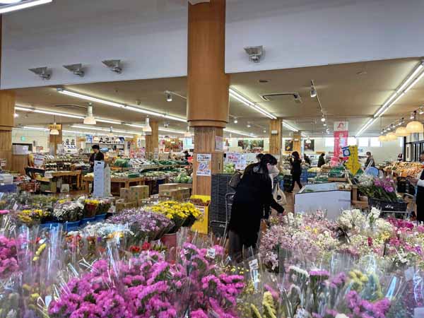 店内に、地元の生産者さんが丹精込められた、野菜や果物、花、加工品が