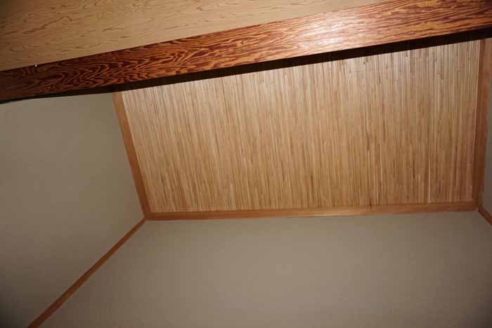 細い竹で天井を化粧しています。こうゆう見えないところにお金をかけているところが、とっても粋ですし、細部まで丁寧に建物を造り込んだ様子がうかがえます。