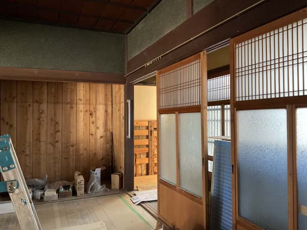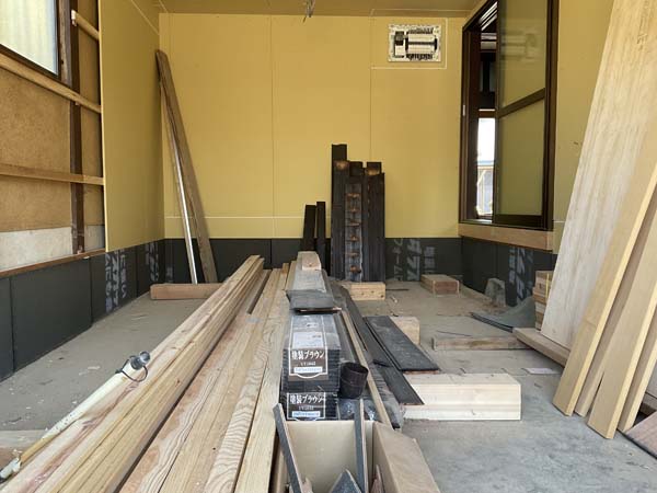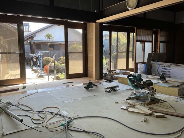 リビングも現在進行中。玄関側から、庭側から、と両側から