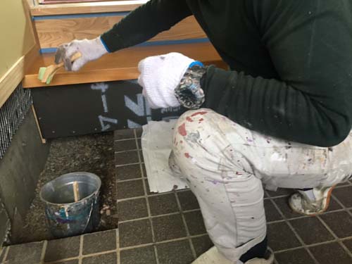 丁寧に塗料を施しているのは関戸塗装、堀川さんです。