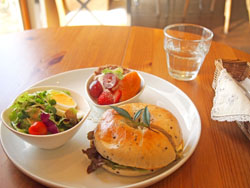 海南市内の閑静な住宅街の中にあるお洒落なお店は、おいしいベーグルを目当てに通う常連さんも多く、いつも賑わっています。人気のベーグルは昼頃には売り切れてしまうほど!